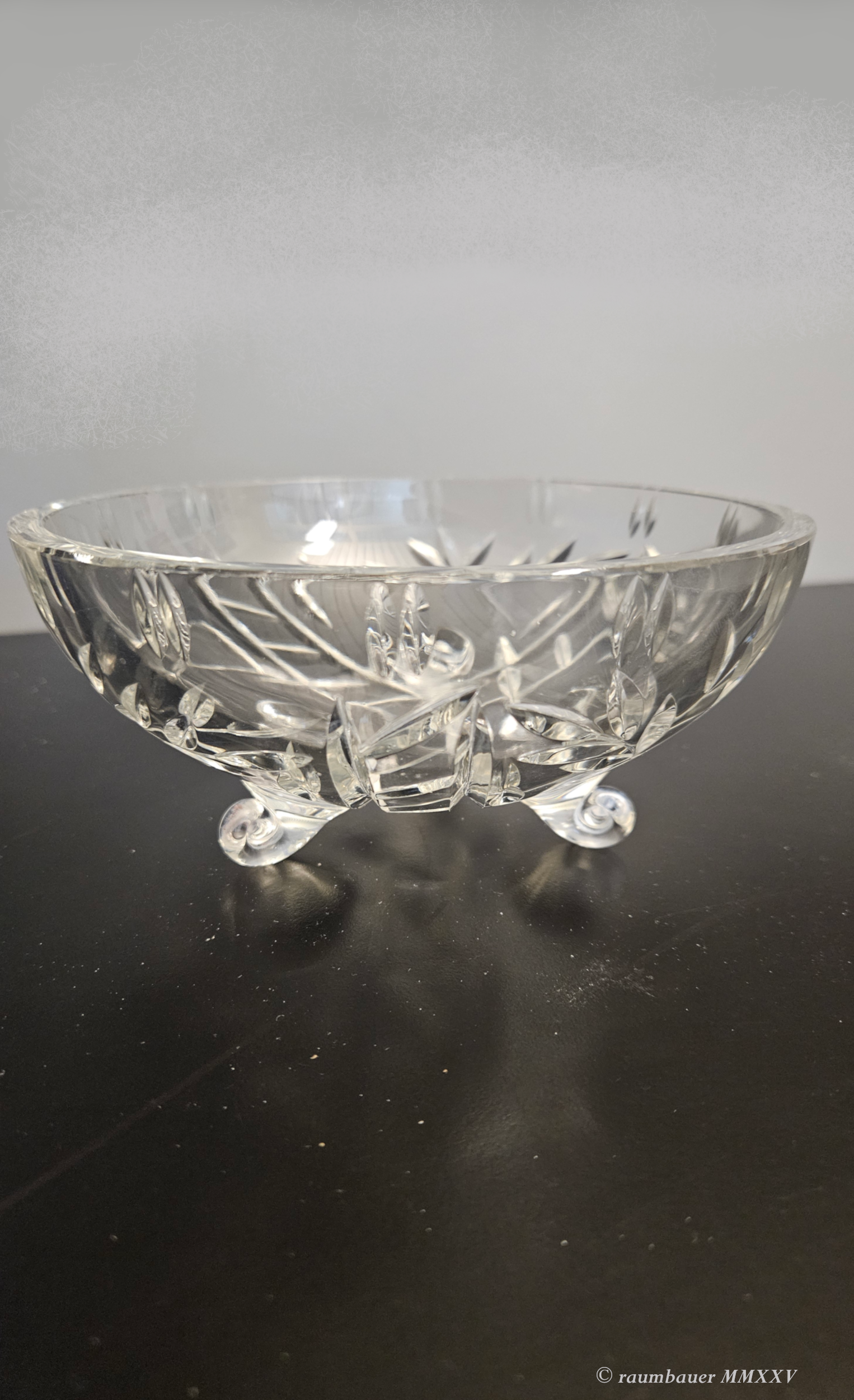 Elegante Bleikristallschale auf 3 Füssen. Diese Einzelstück ist eine schöne Ergänzung für Ihren gedeckten Tisch. Perfekter Zustand ohne Schäden.